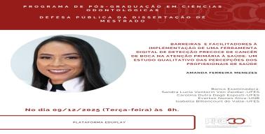 A Coordenação do Programa de Pós-Graduação em Ciências Odontológicas (PPGCO), do Centro de Ciências da Saúde, da Universidade Federal do Espírito Santo (UFES), torna públicas as normas do Edital no 02/2025, para o preenchimento de vagas para o primeiro semestre letivo de 2026, no nível de Mestrado, na modalidade Acadêmico, em conformidade com as exigências do Regimento Interno do PPGCO, da Resolução No 52/2023-CEPE/UFES e da Resolução Normativa PPGCO No 02/2024.